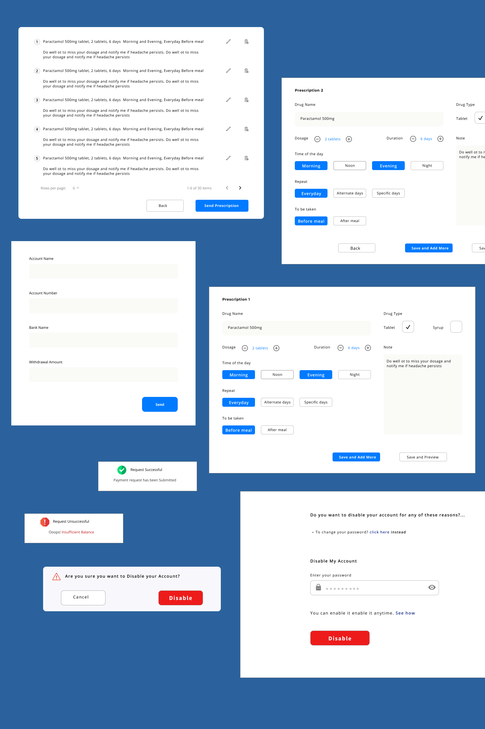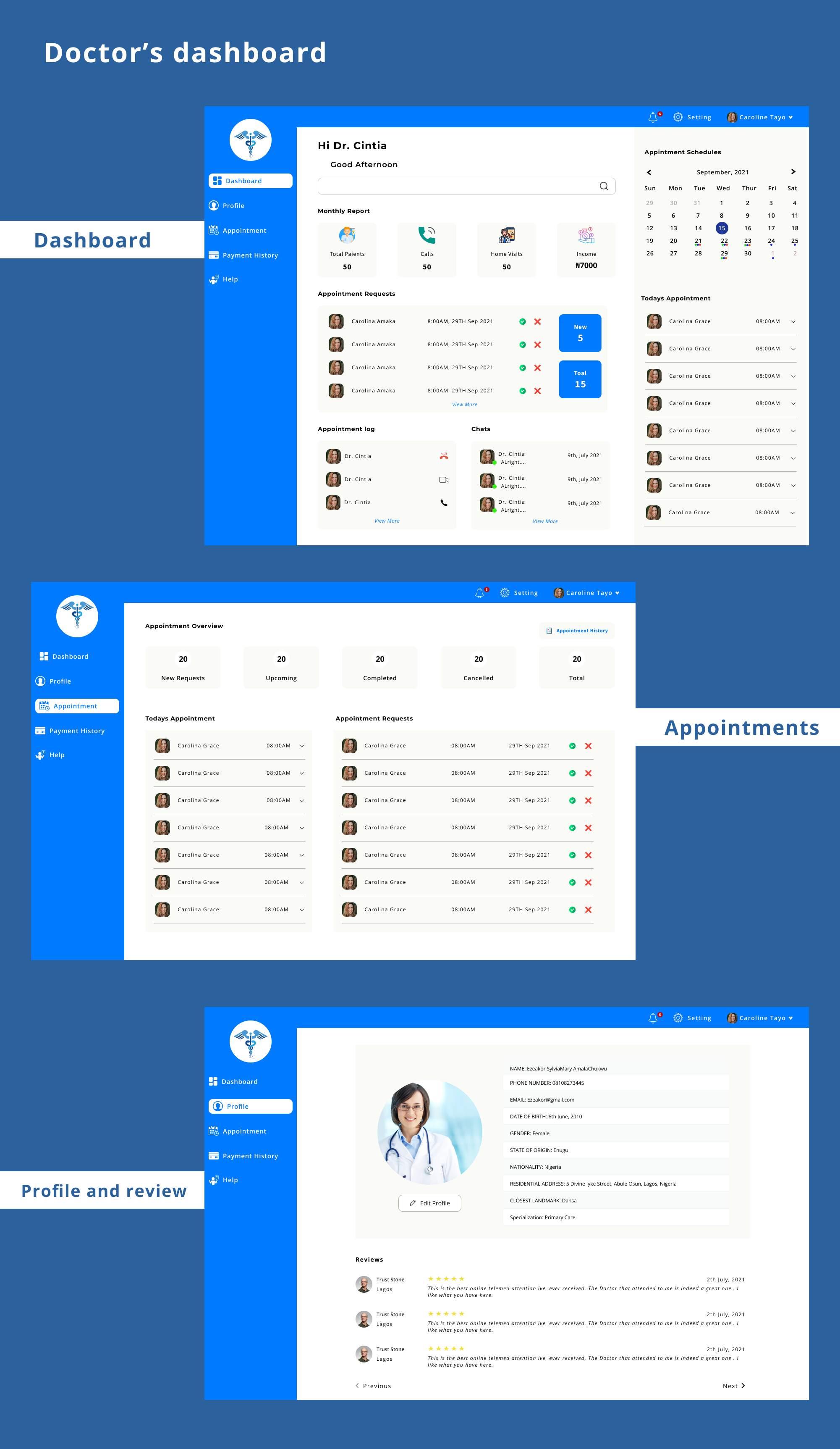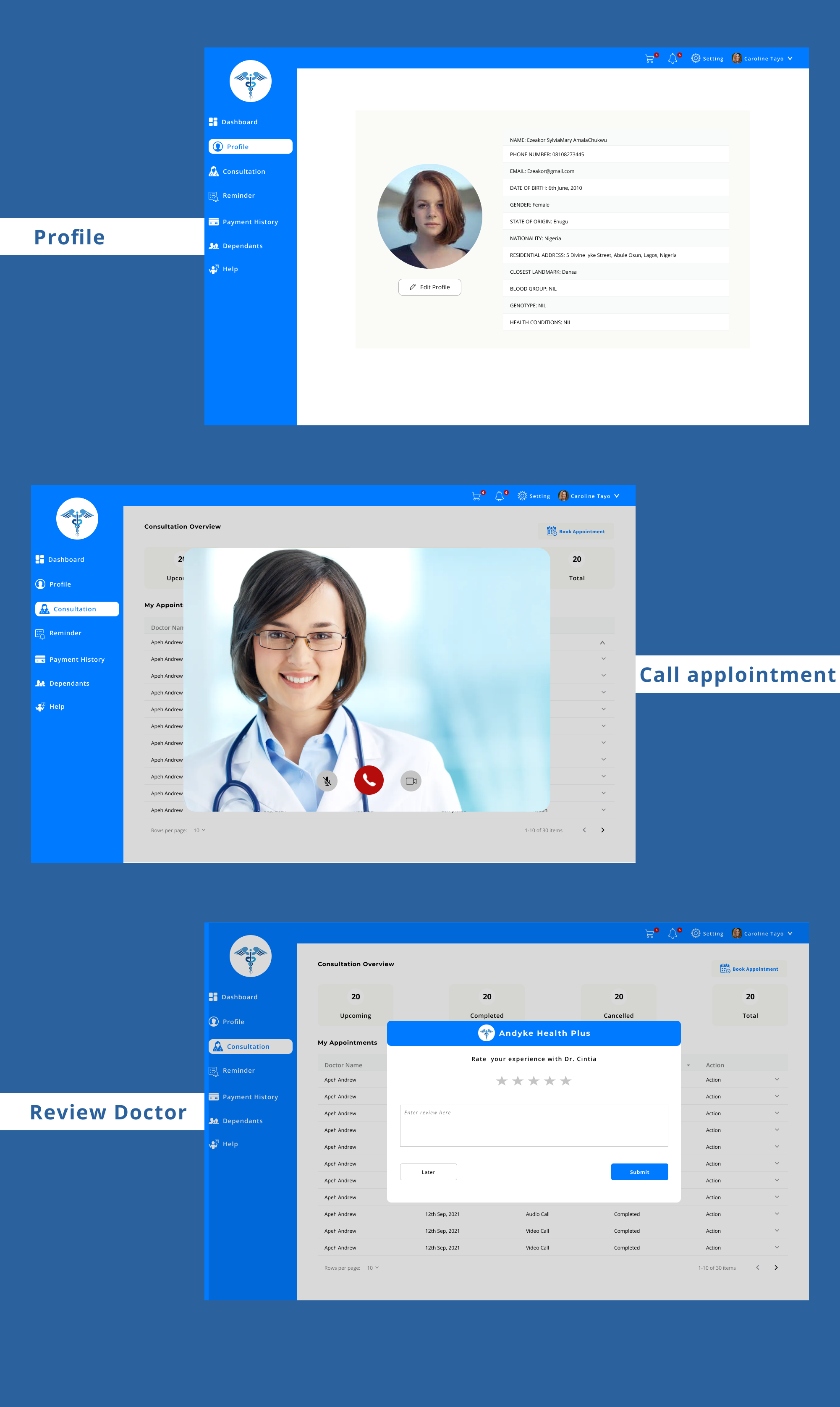 Patients will be able to find a doctor and book an appointment with them. After each session, the Doctor prescribes drugs for them and sends them. They receive the prescription and order them from the online pharmacy that gets them delivered to their homes.