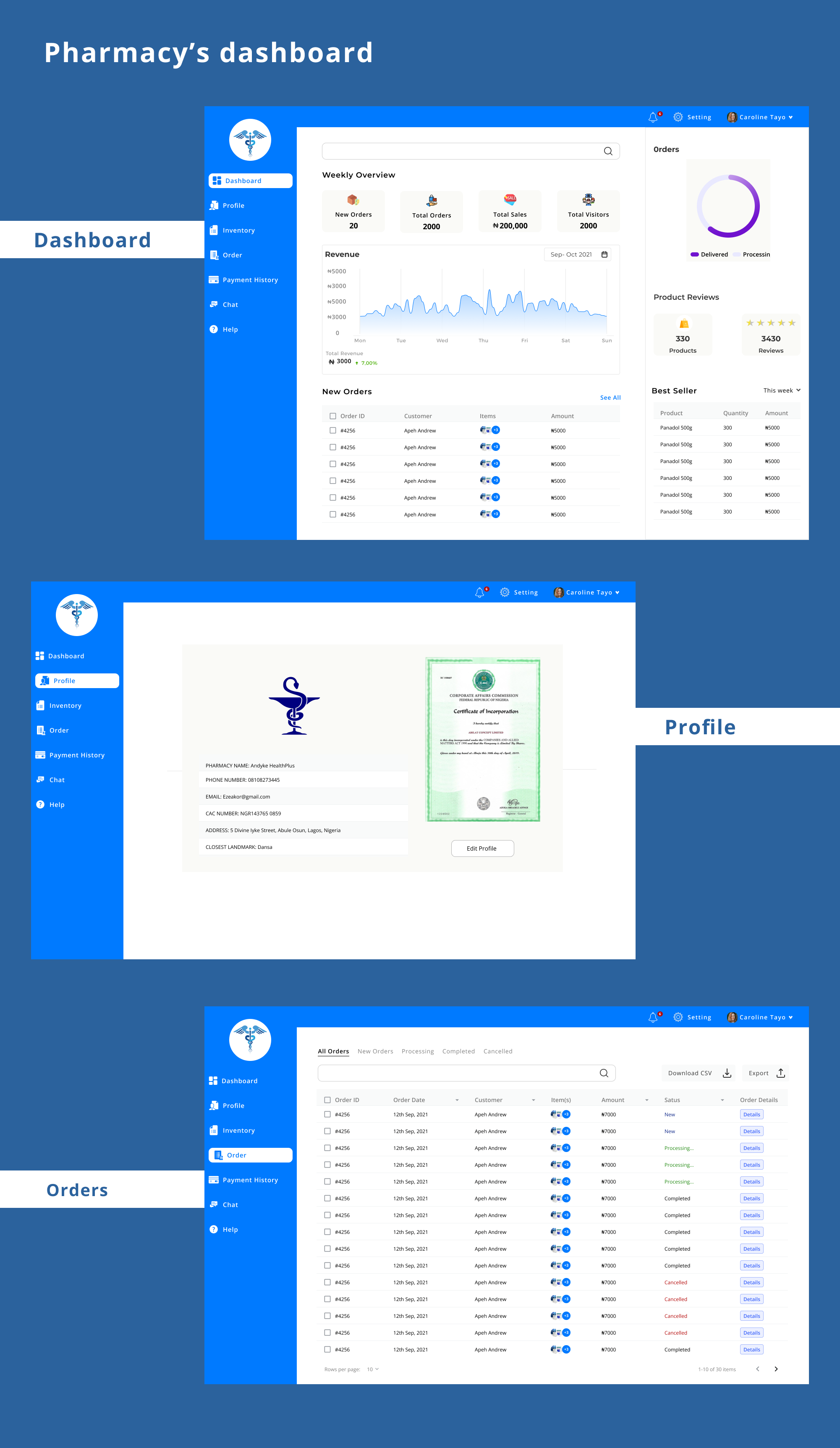This Pharmacy section allows a Patient to be able to order the drugs prescribed by the Doctor and get them delivered to the their location.