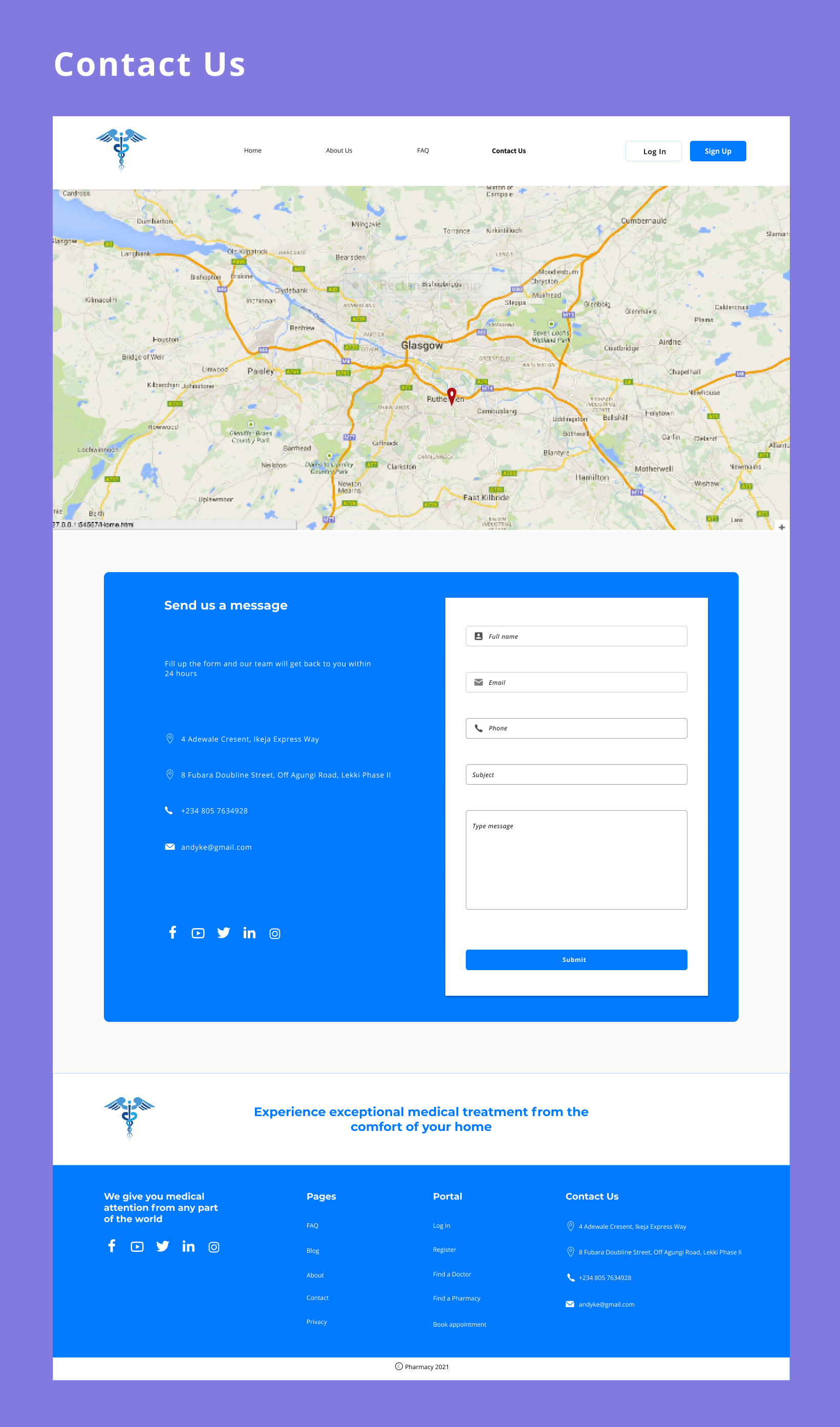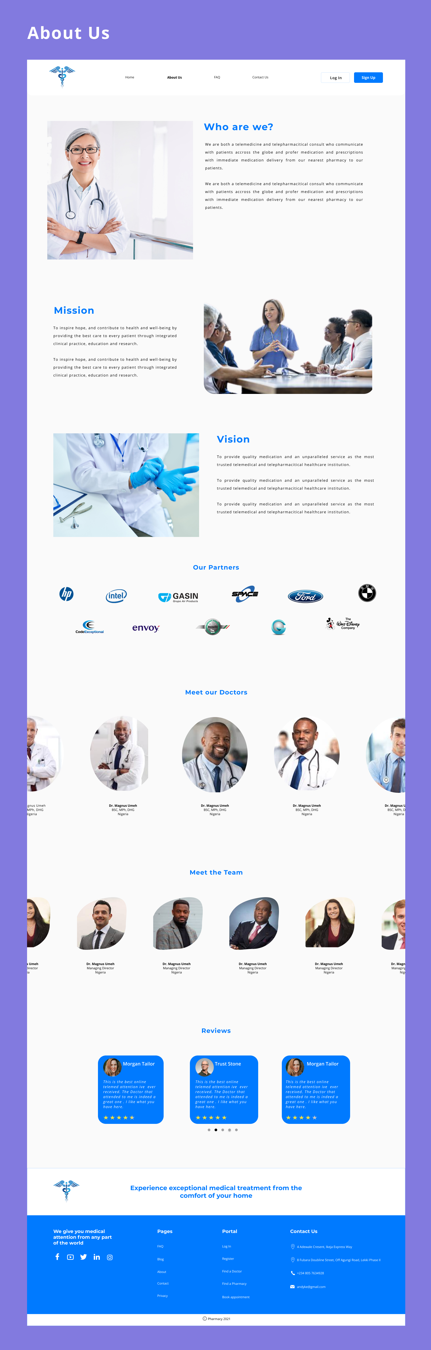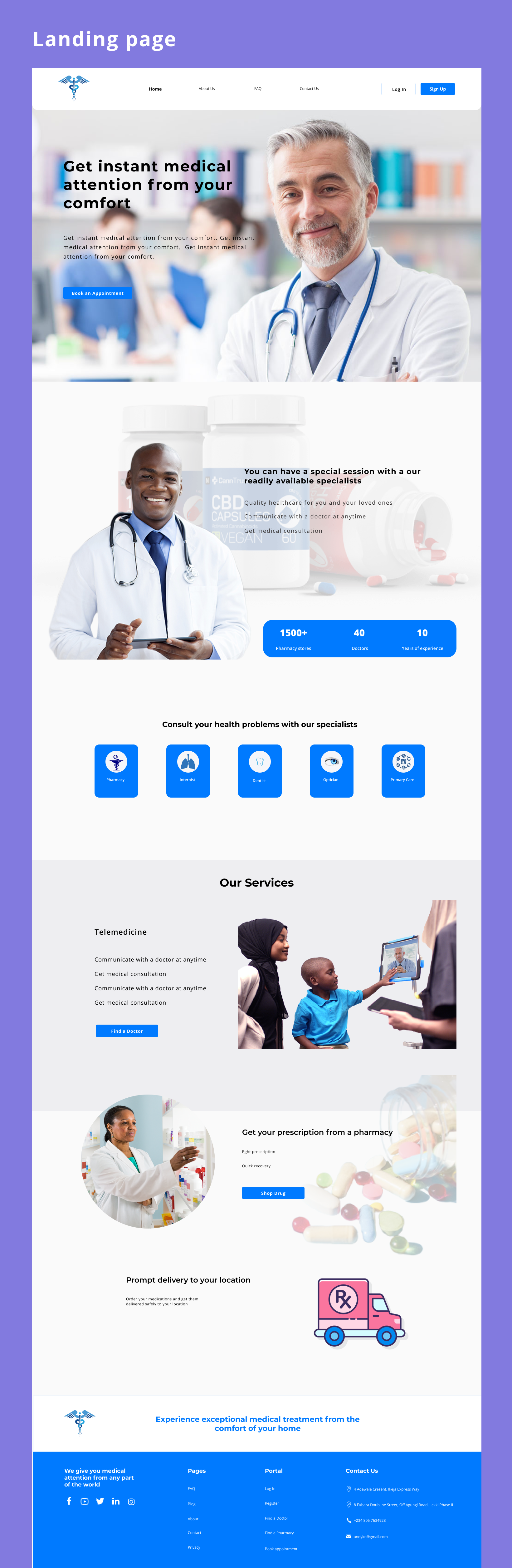 This project is designed to facilitate stress-free medical attention thereby connecting Patients to Doctors and Pharmacies to gain medical attention and drugs prescribed from the comfort of their homes. Users of this application include Patients, Doctors, Pharmacies, and Admins.